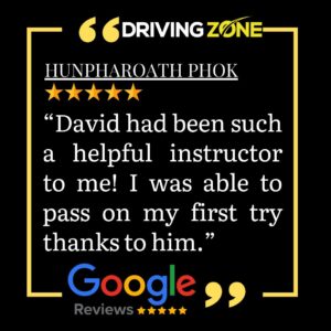 Thanks to Bill at Driving Zone, I not only passed my driving test with ease but also developed a strong foundation in driving skills that I’ll carry with me for life. I highly recommend them to anyone looking for top-notch driving instruction!