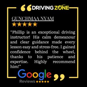 Learning to drive with Bill at Driving Zone has been an exceptional experience. From the very start, he provided a structured and personalised approach that catered to my pace of learning. My instructor was incredibly patient, knowledgeable, and always encouraged me to build confidence behind the wheel. I felt completely supported and guided throughout the entire learning journey.