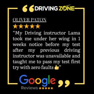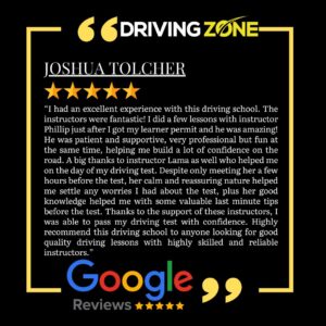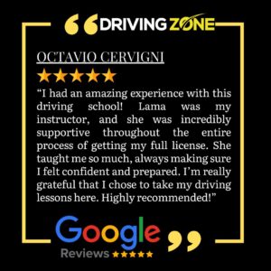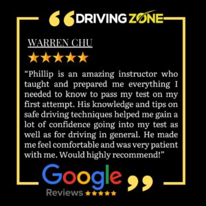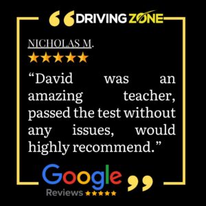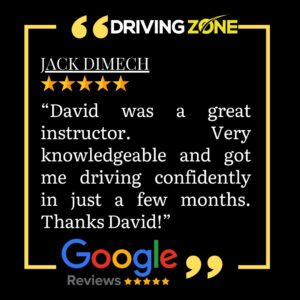 Thanks to Bill at Driving Zone, I not only passed my driving test with ease but also developed a strong foundation in driving skills that I’ll carry with me for life. I highly recommend them to anyone looking for top-notch driving instruction!